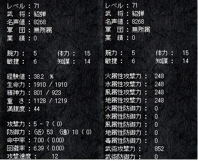 とりあえず体力のダメと智謀のダメでどれぐらいの差が出るか計算。